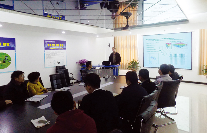 報告中,Nadeau研究員介紹了重復地震的概念以及重復地震研究的最新進展,詳細講述了斷層活動性對重復地震發(fā)生的影響,基于重復地震周期性,為地震預警、預報提供新的方法和思路。報告會后,就目前公司在微地震監(jiān)測與數(shù)據(jù)處理方面遇到的技術難題,Nadeau研究員同公司領導及技術人員作了進一步的交流和探討,討論了以后在技術開發(fā)方面可以合作的方向。