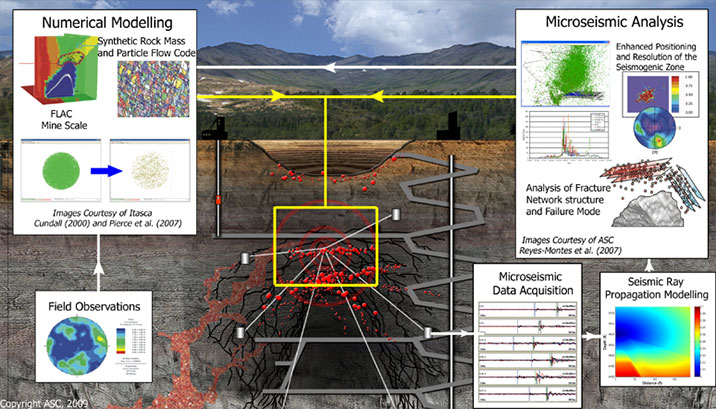 近十多年來,以沖擊地壓、煤與瓦斯突出、突水為主的礦山動力災(zāi)害已成為我國工業(yè)安全領(lǐng)域的主要災(zāi)害,已成為制約我國礦業(yè)尤其是煤炭產(chǎn)業(yè)健康發(fā)展的關(guān)鍵因素。礦山動力災(zāi)害往往伴隨著微地震的發(fā)生,因此為降低礦山動力災(zāi)害,在微地震監(jiān)測領(lǐng)域的研究迫在眉睫。微地震實驗室致力于礦山應(yīng)用需求,深入分析微震數(shù)據(jù),重點研究微地震信號的快速準(zhǔn)確拾取和定位,確定微震事件震源機制,明確巖石拉伸剪切等破壞的力學(xué)機制,可靠全面確定礦山的應(yīng)力狀態(tài)和潛在風(fēng)險。實驗室的一個特色研究是微地震成像,利用我們開發(fā)的雙差地震成像算法,可以確定開挖區(qū)域的介質(zhì)速度在空間和時間上的變化,進而確定礦山的破壞情況和應(yīng)力變化,給動力災(zāi)害的演化分析提供更豐富的工具。實驗室三方目前在緊密合作,開發(fā)具備國際先進水平的礦山微地震監(jiān)測系統(tǒng)。